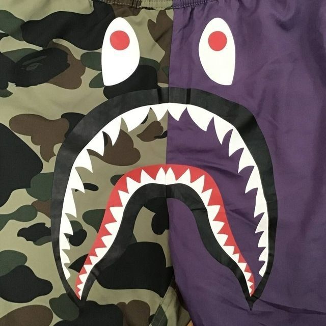a bathing ape shark beach shorts 1st camo green × パープル Sサイズ です★