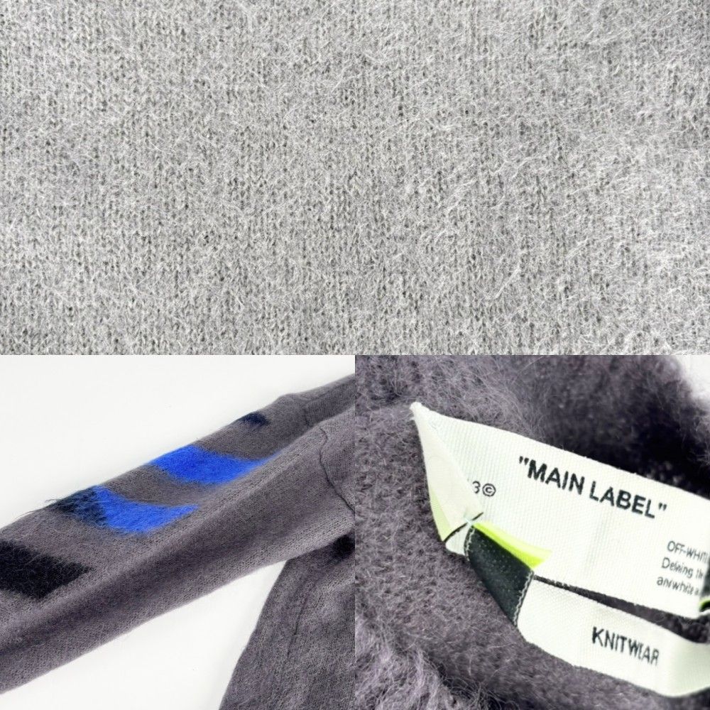 オフホワイト ニット メンズ アロー クルーネック アパレル 服 トップス OFF-WHITE XS グレー モヘア ポリアミド ウール 秋 冬 品