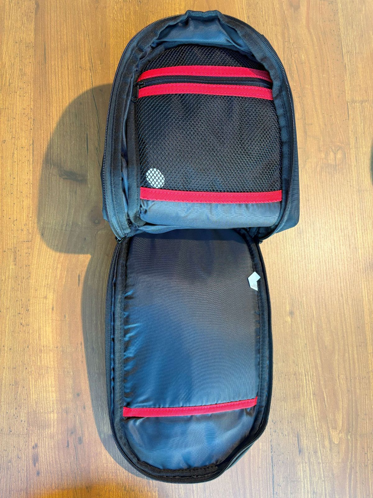外ポケットが1つ、中ポケットが2つあります。上部に持ち運びやすい持ち手も付いています。