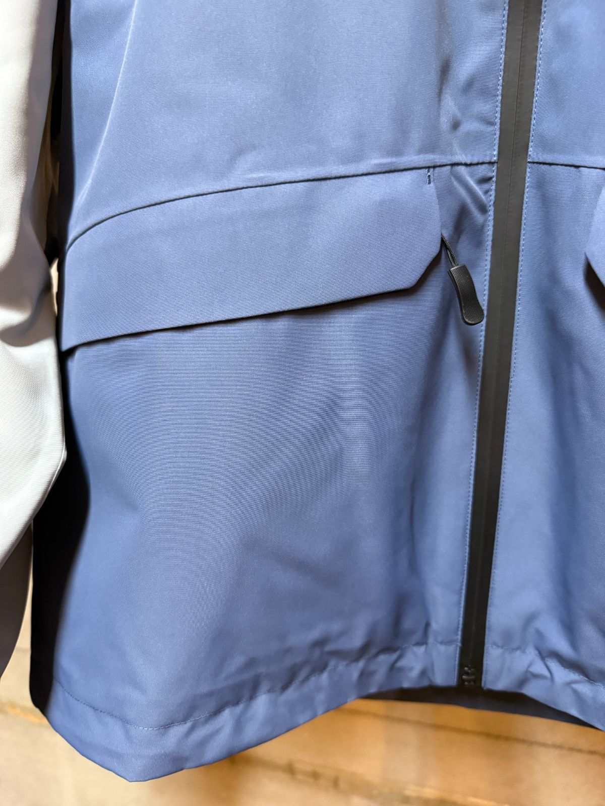 クラシックな雰囲気を持ちながら、防水性と通気性を備えた2レイヤー仕様のジャケット。レトロ感と機能性を融合させた一着。