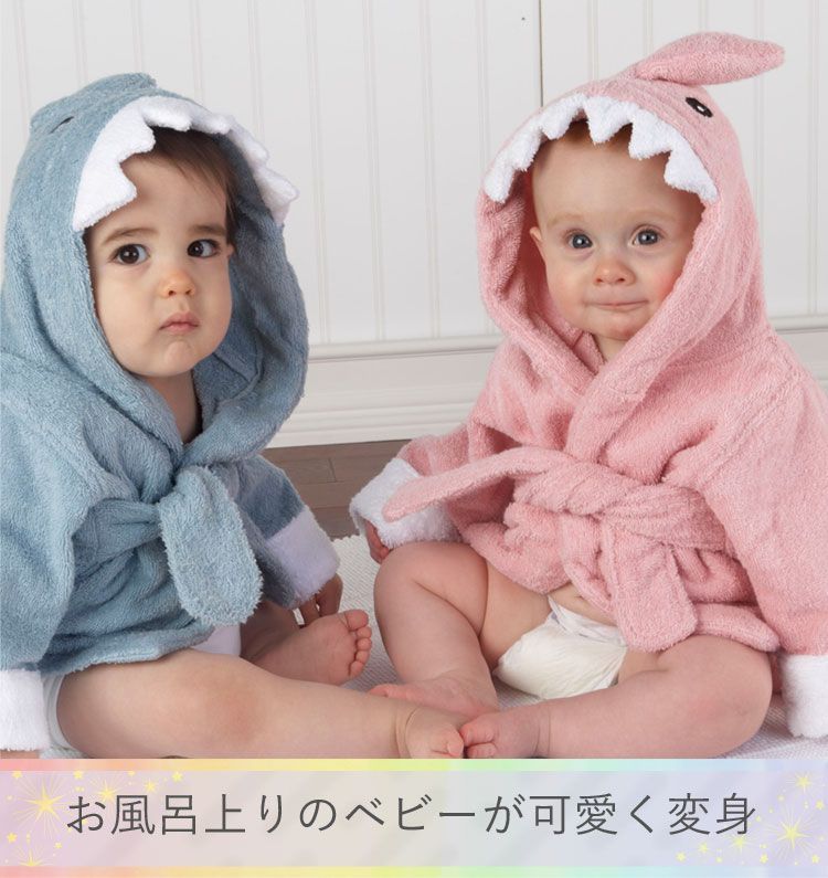 ベビーアスペン フード付き ベビーバスローブ ピンクシャーク ベビーバスタオル 湯上りタオル お風呂 シャーク サメ コスプレ 子供 プレゼント ピンク 1