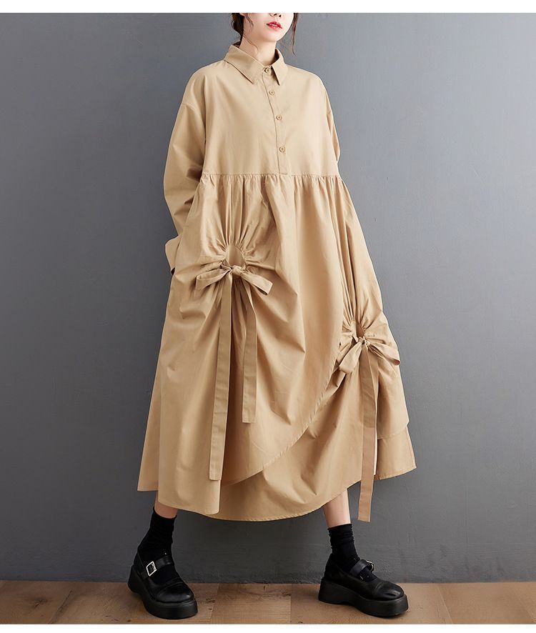 シャツワンピース レディース ロングワンピース マキシワンピース 長袖 リボン ロング丈 Aライン 着痩せ ゆったり 体型カバー 春 秋 冬 通勤 OL 20代 30代 40代 50代 きれいめ 無地 xkmilyx 131 DZ 20