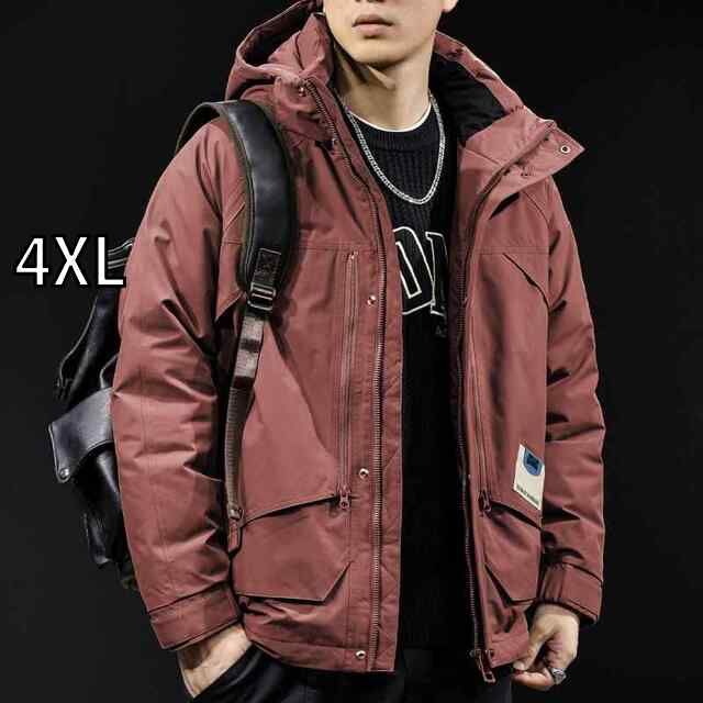 4 XL 秋冬 コーデ メンズ 服 シンプル ファッション オシャレ 大人 かっこいい 大きいサイズ ストリート 紳士服 ダウン ジャケット グレー ダック 暖かい レンガ レッド L