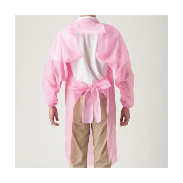 ポリエチ袖付エプロン フリーサイズ ピンク 4442 ×20箱