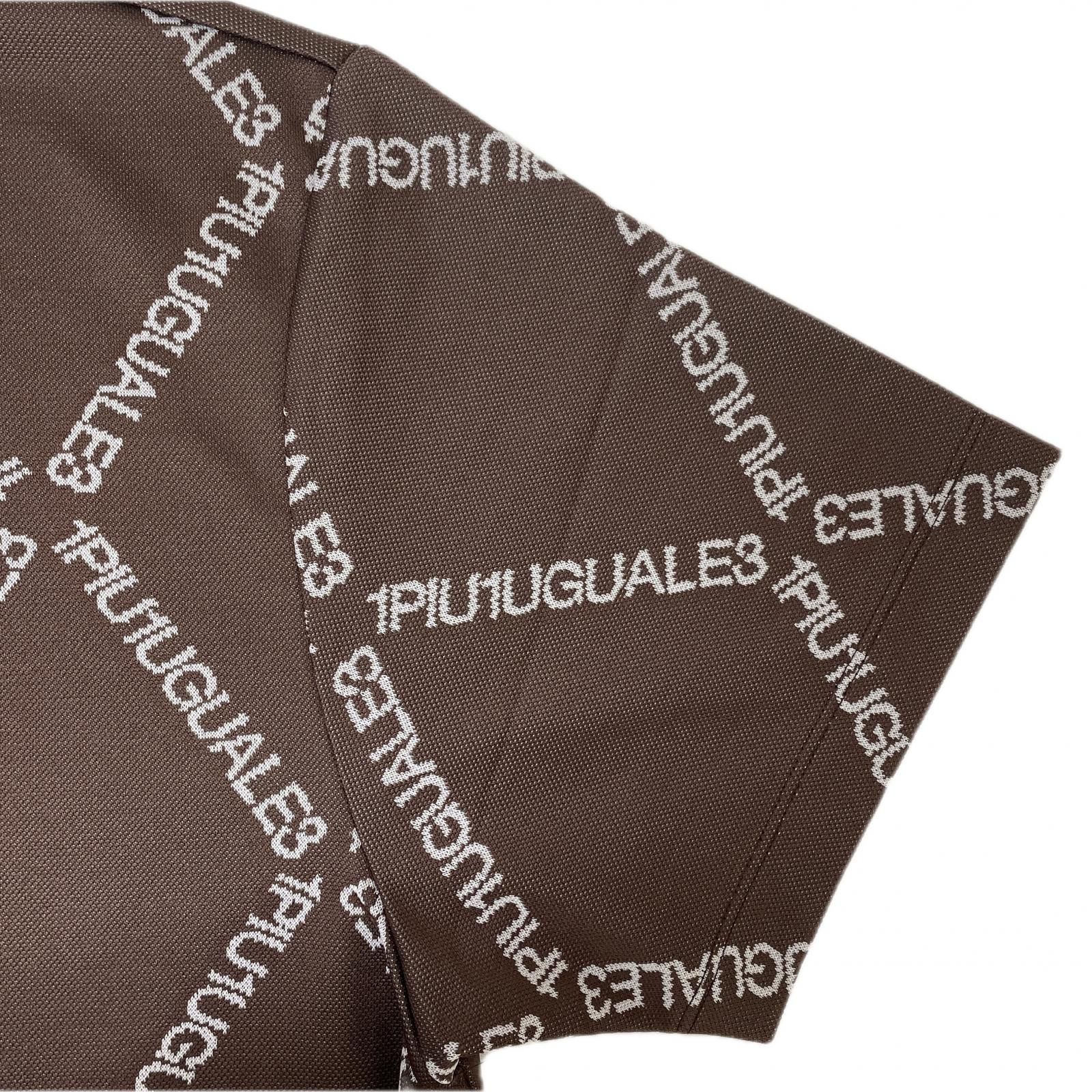 メンズ ウノピュウノウグァーレトレ 1 piu uguale 3 半袖シャツ 5 L 茶 引掛け有り 総ロゴ柄 モックネック