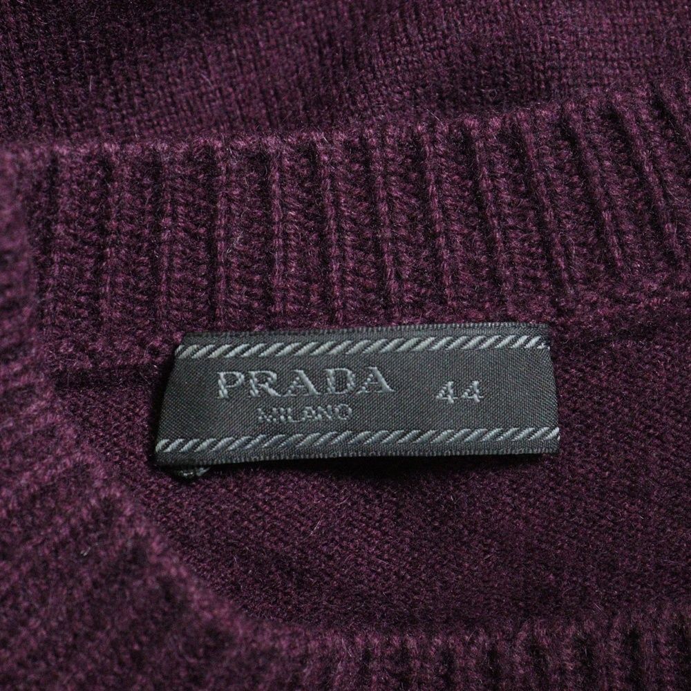 PRADA プラダ 15 AW スウェード エルボーパッチ カシミヤ混 ウール クルーネック ロングスリーブ 長袖ニット セーター ボルドー UMA 113