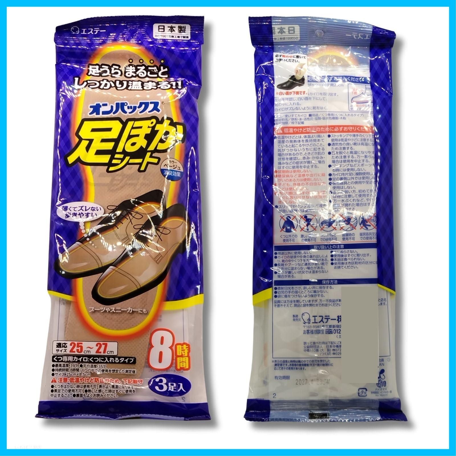エステー オンパックス 足ぽかシート 25cm まとめ買い 足裏 靴専用カイロ 8時間 ベージュ 3足入