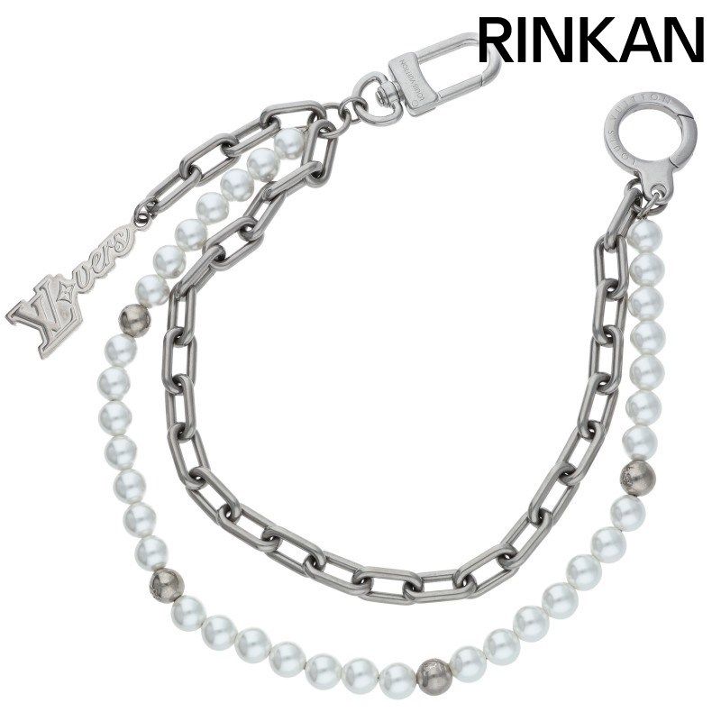 ルイヴィトン M 02606 バッグチャーム チェーンベルト パール LVロゴパール シルバーウォレットチェーン メンズ