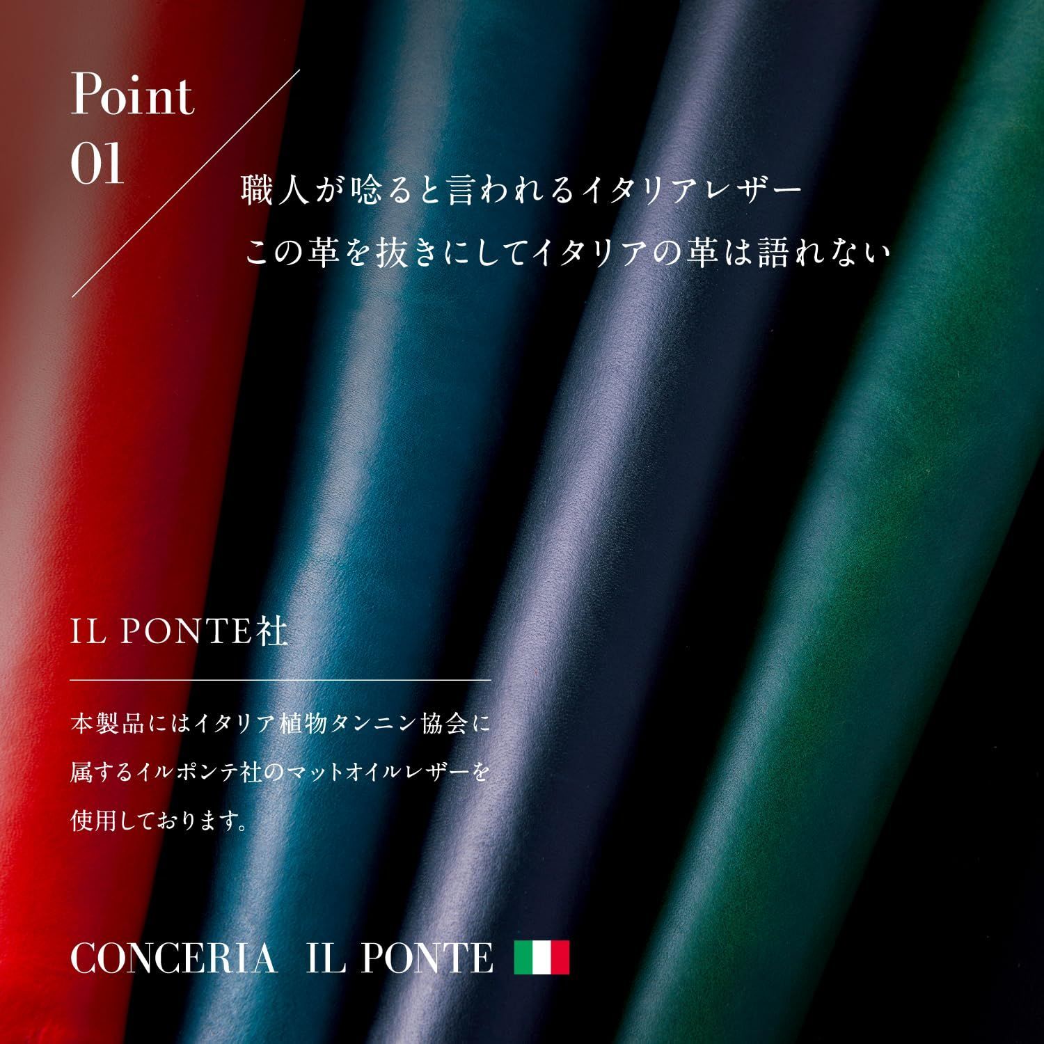 【革を育てる】イタリアで1000年以上受け継がれてきた伝統技法であるバケッタ製法で作られた革を使用しております。イタリアンレザーならではの美しい色味とエイジングには定評があります。イタリアンレザー協会発行のシリアル番号付きギャランティーカードを商品に同封致します。