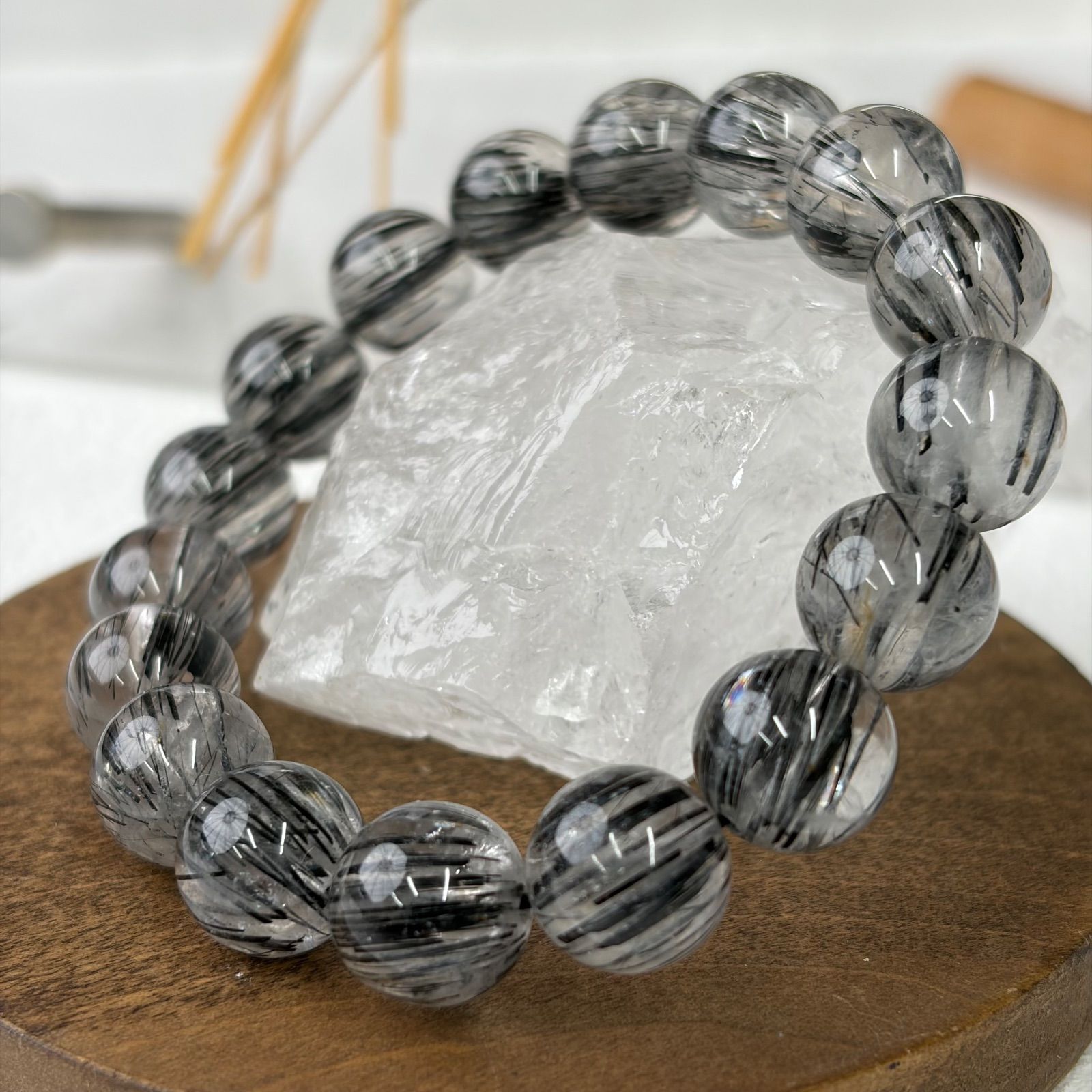 現品 ブラックルチルクォーツ 黒針水晶 ブレスレット 天然石 パワーストン 高品質