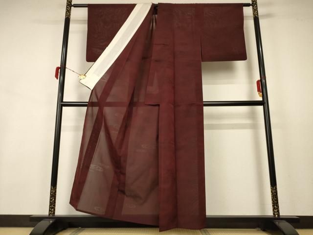 平和屋着物 夏物 色無地 流水紋紗 葡萄茶色 正絹 jd