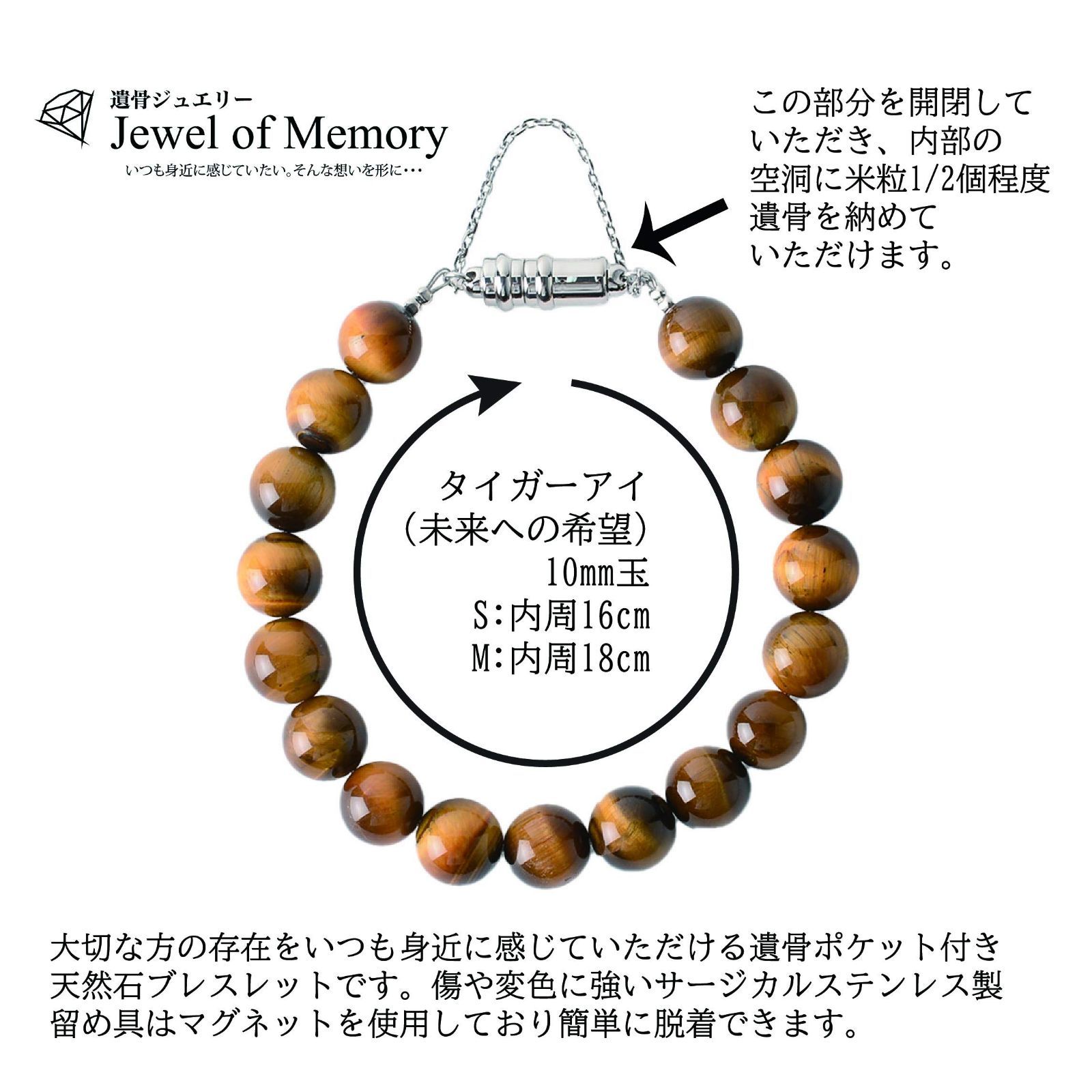 Jewel of Memory 遺骨ブレスレット 手元供養 メモリアル 遺骨入れ ステンレス 316L メンズ レディース 天然石 タイガーアイ 10㎜玉