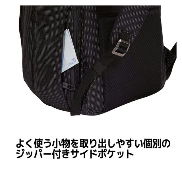 このバックパックは、小物を整理するための賢いコンパートメントを備えています。壊れやすいものを保護する、つぶれにくいSafeZoneポケットや、コードの絡まりを解消し、移動中でもデバイスを簡単に充電できるPowerPocketがあります。また、RFIDブロックポケットは個人情報を保護し、2つの収納スリーブは15.5インチノートパソコンや10.1インチタブレットを収納できます。ThuleCrossoverラップトップ用バックパックは、あなたのアイテムを保護する、軽量で耐候性のある素材を使用した設計で、スマートでモダンな仕上がりです。