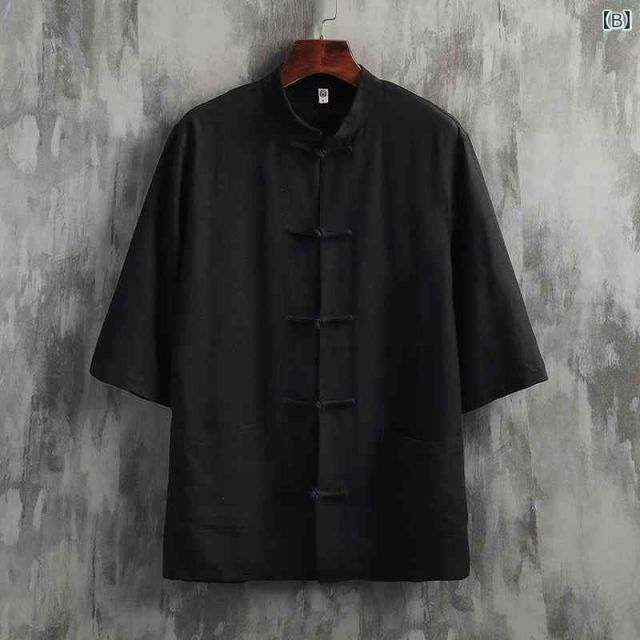 3 XL 秋冬 コーデ メンズ 服 シンプル ファッション オシャレ 大人 かっこいい 大きいサイズ ストリート 紳士服 軽 通気 スタンドカラーリネン シャツ 半袖 唐 スーツ レトロ 綿 リネンシャツ