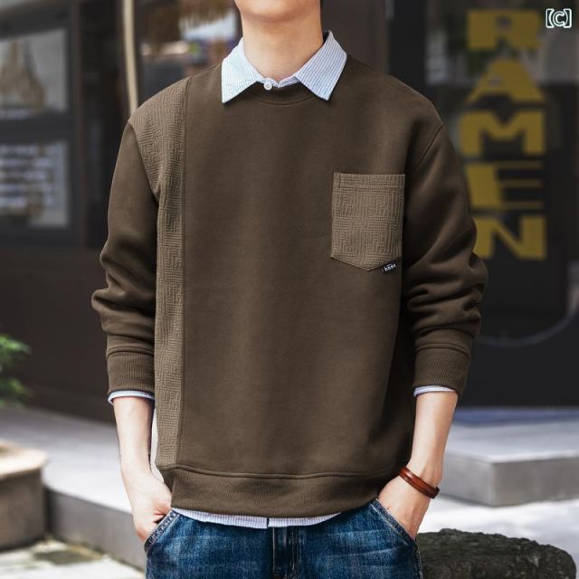M メンズ 服 シンプル ファッション オシャレ 大人 かっこいい 大きいサイズ ストリート 紳士服 アメリカン ラウンドネック セーター 秋ヘビー カジュアル 長袖 ポケット