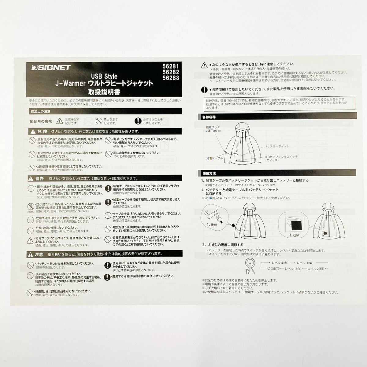 喜一工具 SIGNET USB スタイル J-ウォーマー ウルトラヒートジャケット LL 開封