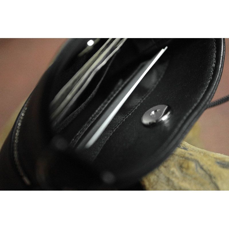 スマートフォンとお財布要素を備えた本革製ショルダーポーチです。