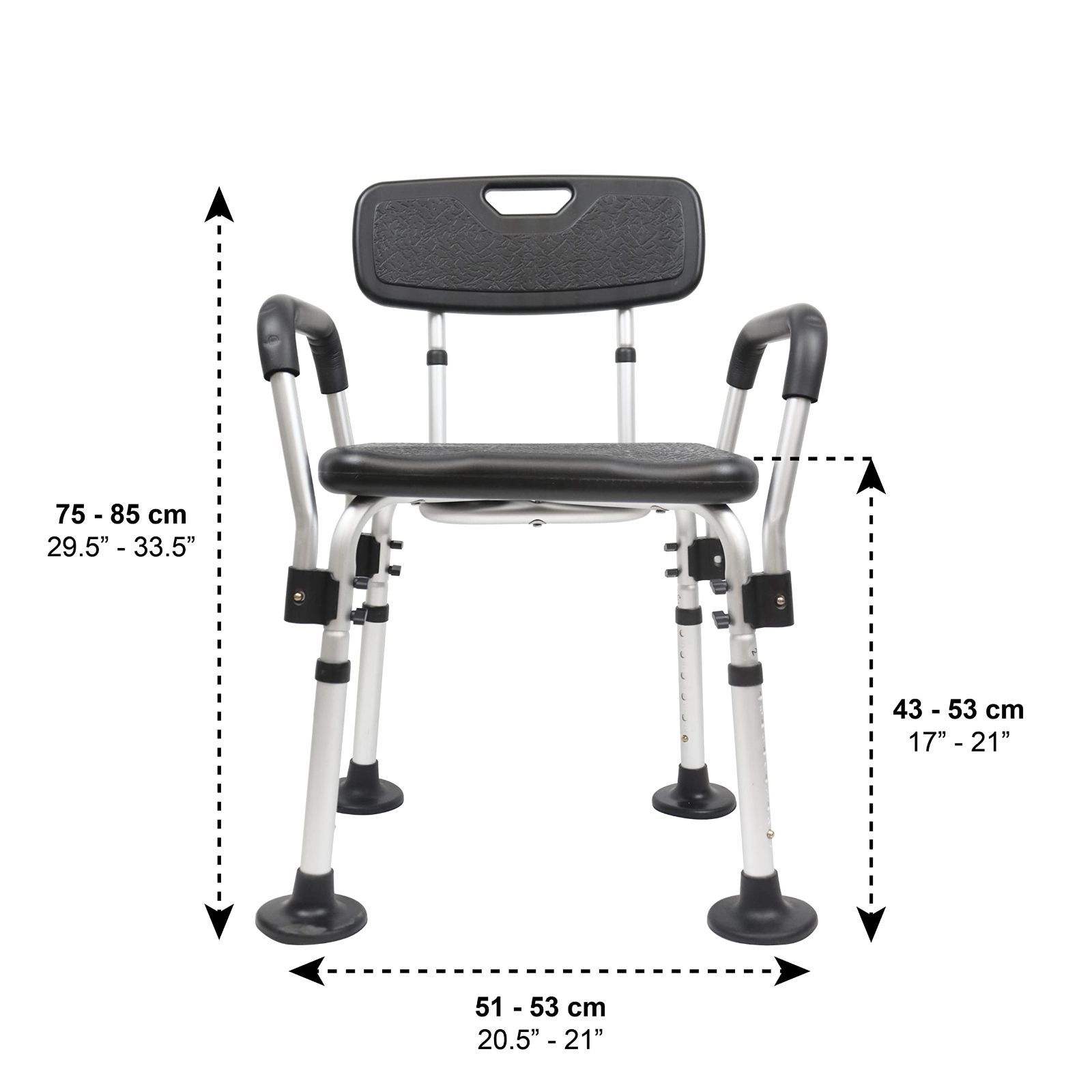 調節可能:5つの設定で高さを調節できるアルミニウム製の脚により、シャワーチェアは高さを4353 cmに簡単に調節できるため、個々のニーズに対応できます。