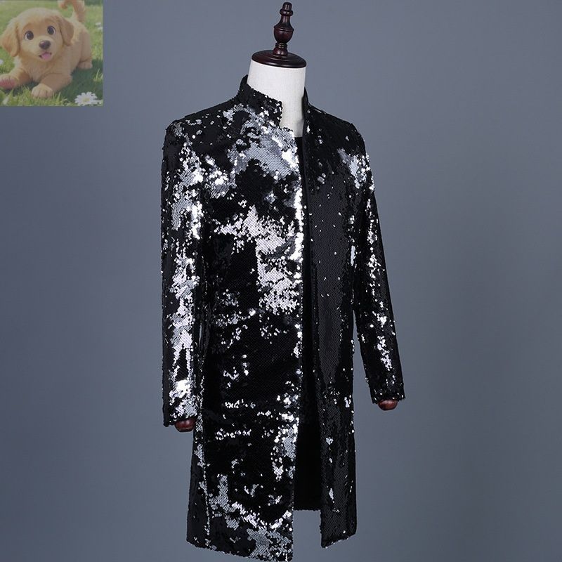 メンズ スーツ ロングジャケット グラデーション シルバー ゴールド宮廷S M L-6 XL演歌 歌手衣装DJ舞台衣装コスプレ