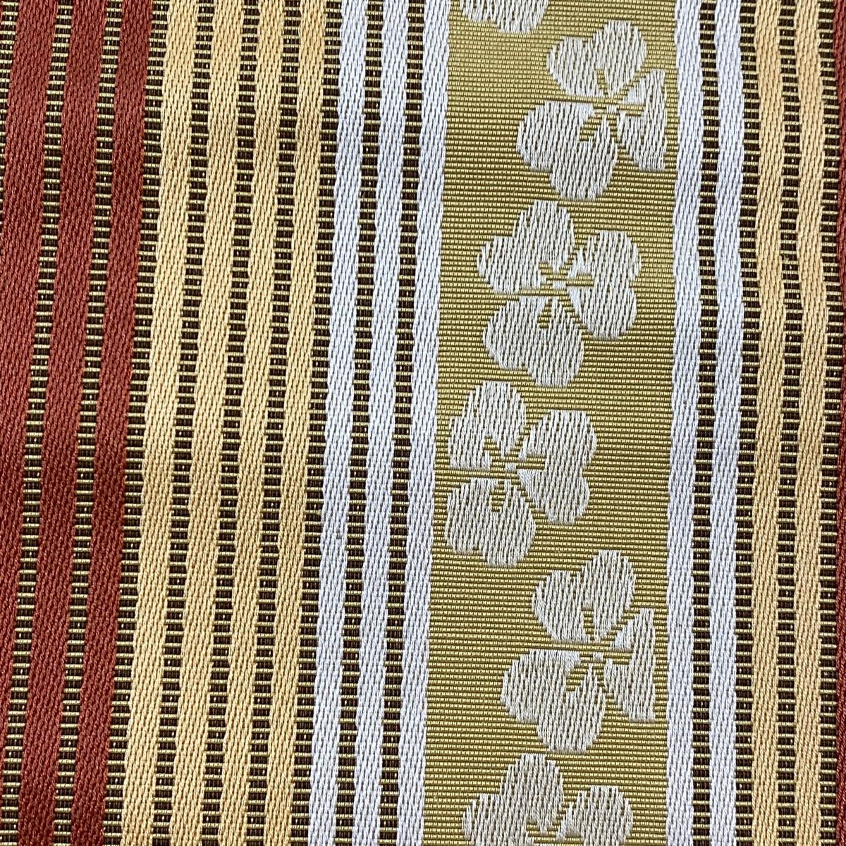 半幅帯 秀品 博多織 証紙 縞 花 黄土色 正絹