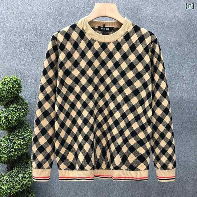 2 XL 秋冬 コーデ メンズ 服 シンプル ファッション オシャレ 大人 かっこいい 大きいサイズ ストリート 紳士服 チェック柄 セーター ラウンドネック 暖かい インナー トップス