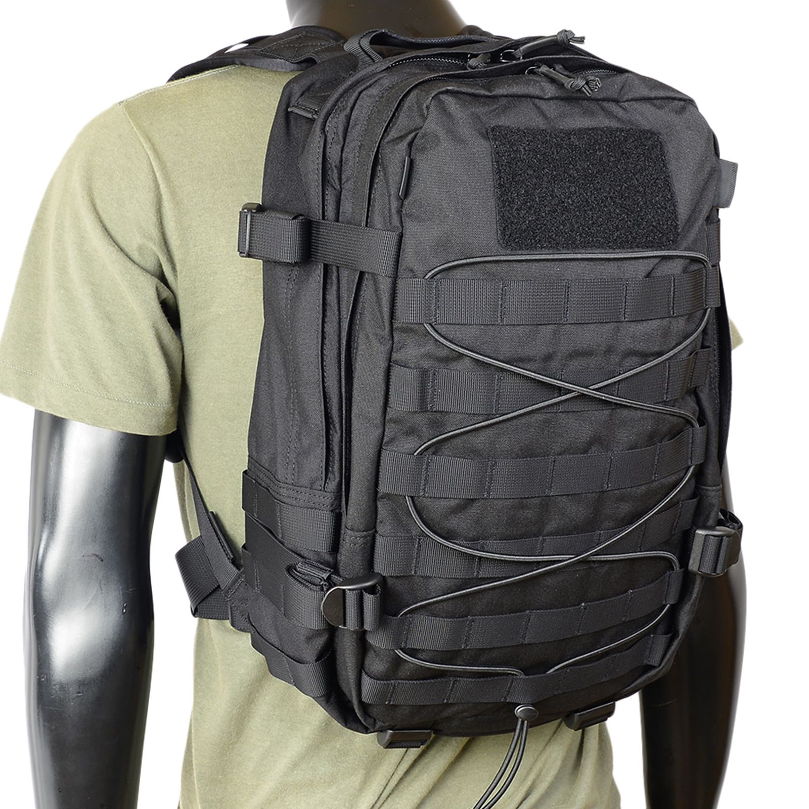 広い範囲にMolle/Palsウェビングを備え、アクセスしやすい表面に追加のポーチを取り付け可能。また、表面のショックコードでバタつかないように押さえることが可能。