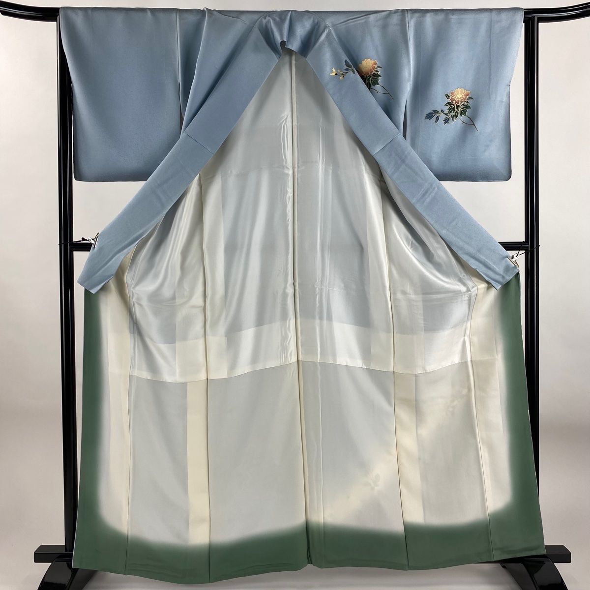 訪問着 身丈162.5 cm 裄丈64.5 M 袷 草花 秋草 金彩 ぼかし 青灰色 正絹 秀品