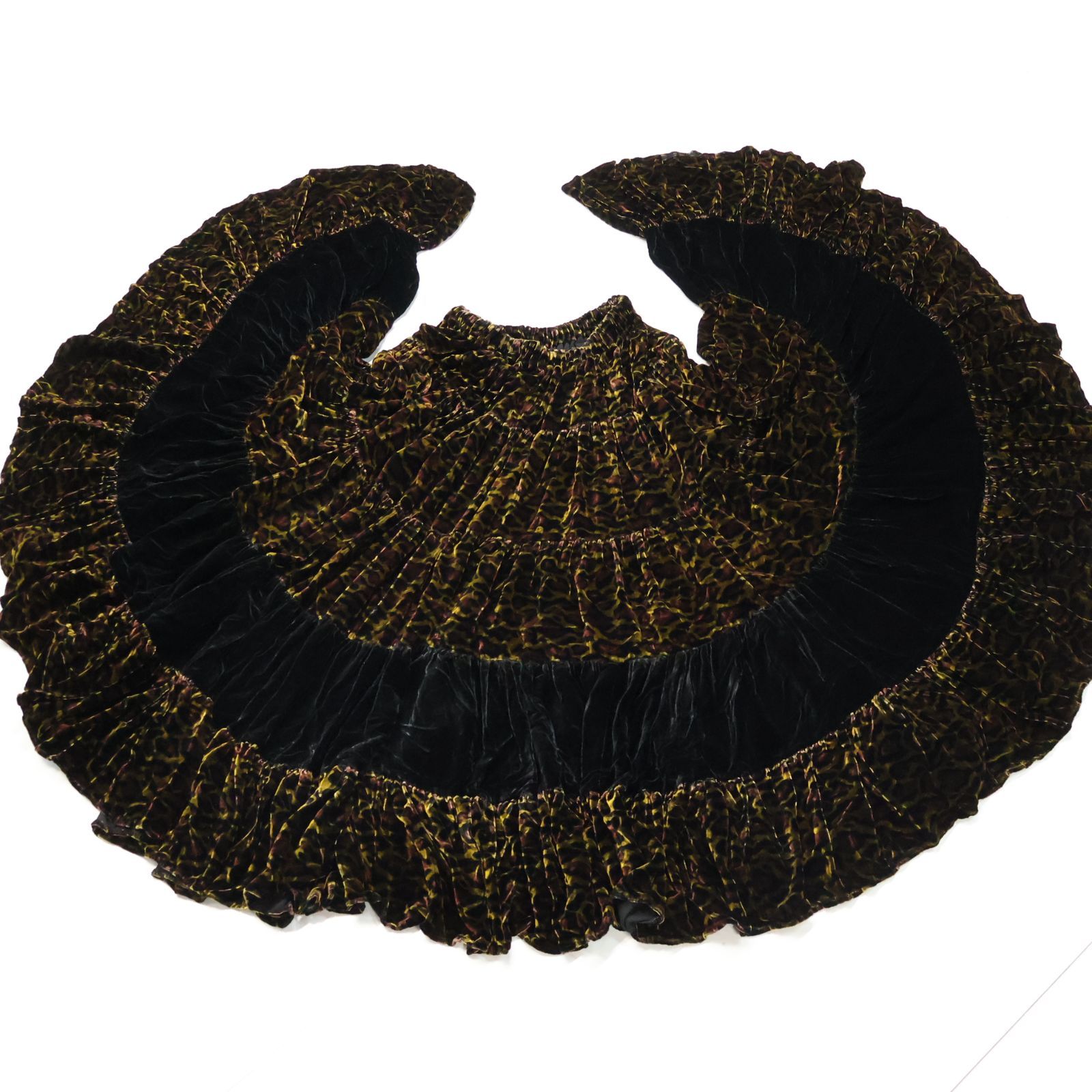 #ベリーダンス #ジプシースカート #黄土色スカート #ブラックスカート #ヒョウ柄 #ベロア生地 #異国情緒 #ダンスファッション #ロングスカート #フリルデザイン #華やか #個性的 #重量感 #ボリュームスカート #ステージ衣装 #エスニックスタイル #特別なイベント #舞台衣装 #おしゃれ #優雅 #ダンス衣装 #ダンスコスチューム #新品 #新品 #ENUTSU