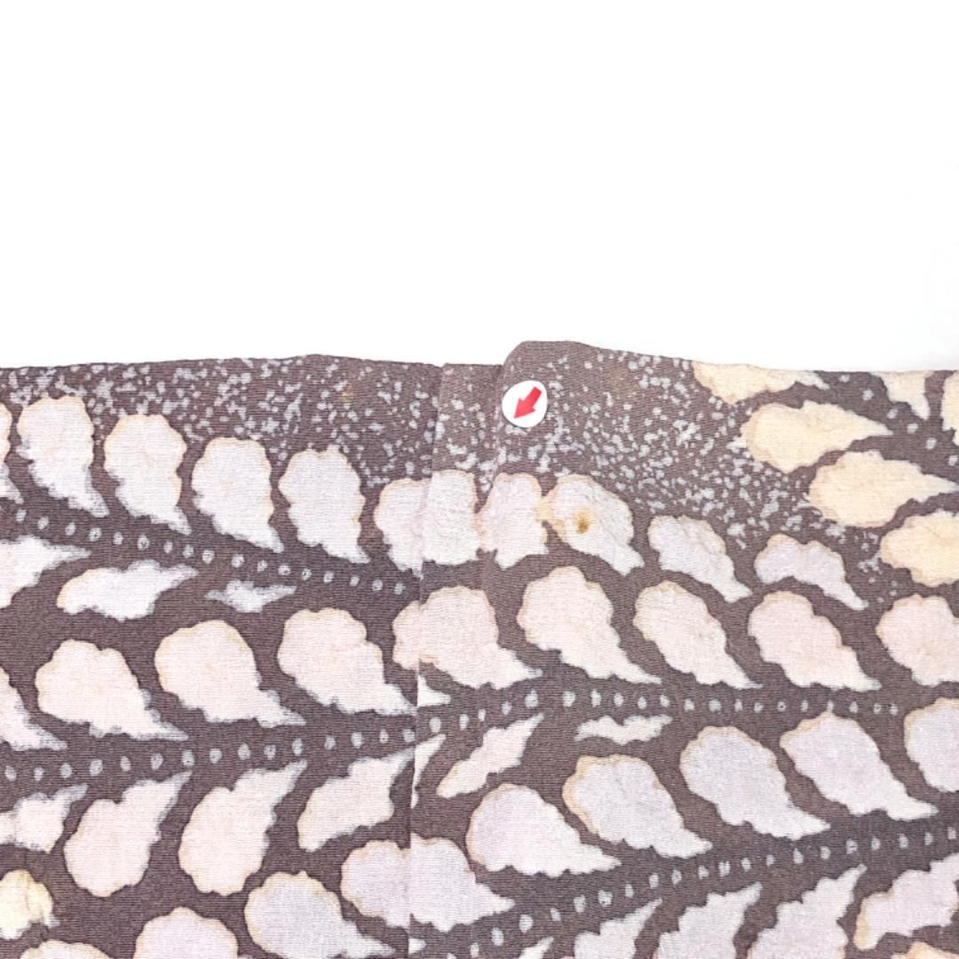 鳩羽色ベースの上品なお色味に美しい辻が花絞りがデザインされた雰囲気の良い素敵な柄裄のお品でございます。