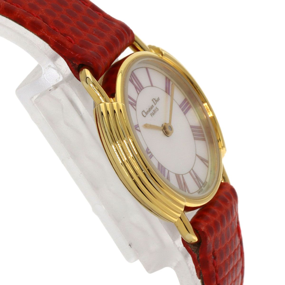 DIOR クリスチャンディオール D 58-121-2 ラウンドフェイス 腕時計 SS 革 レディース