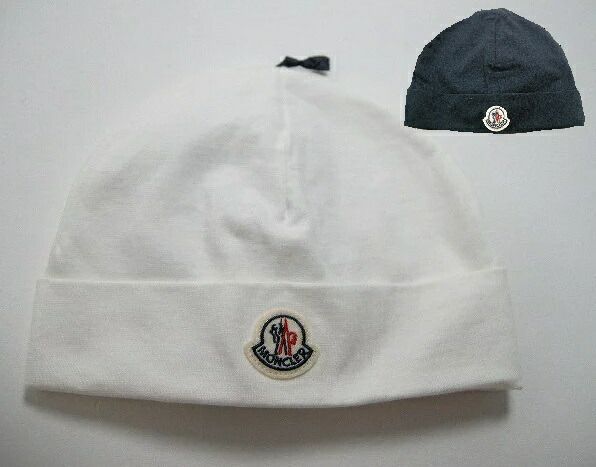 MONCLER モンクレール キッズサイズ KIDS キッズ ボーイ ガール 子供 ベビー ベイビー 赤ちゃん 出産祝い 2018 SS 春夏 ロゴワッペン付コットンニットキャップ ワッチキャップ CAP 帽子 ダークネイビー ホワイト
