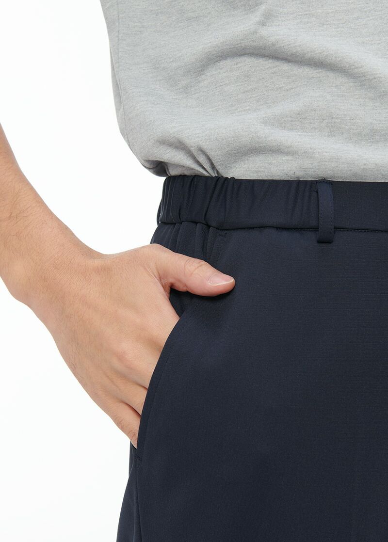 すっきりとしたテーパードシルエットのメンズパンツ。股下丈調整機能付きで機能的にも優れています。