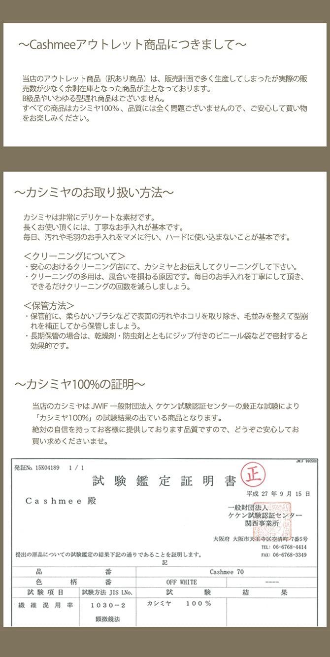 日本の毛織物の発展と共に120年の歴史を築いてきた老舗・深喜毛織株式会社(カシミヤのフカキ)の完全な監修の元誕生したカシミヤ専門ショップ