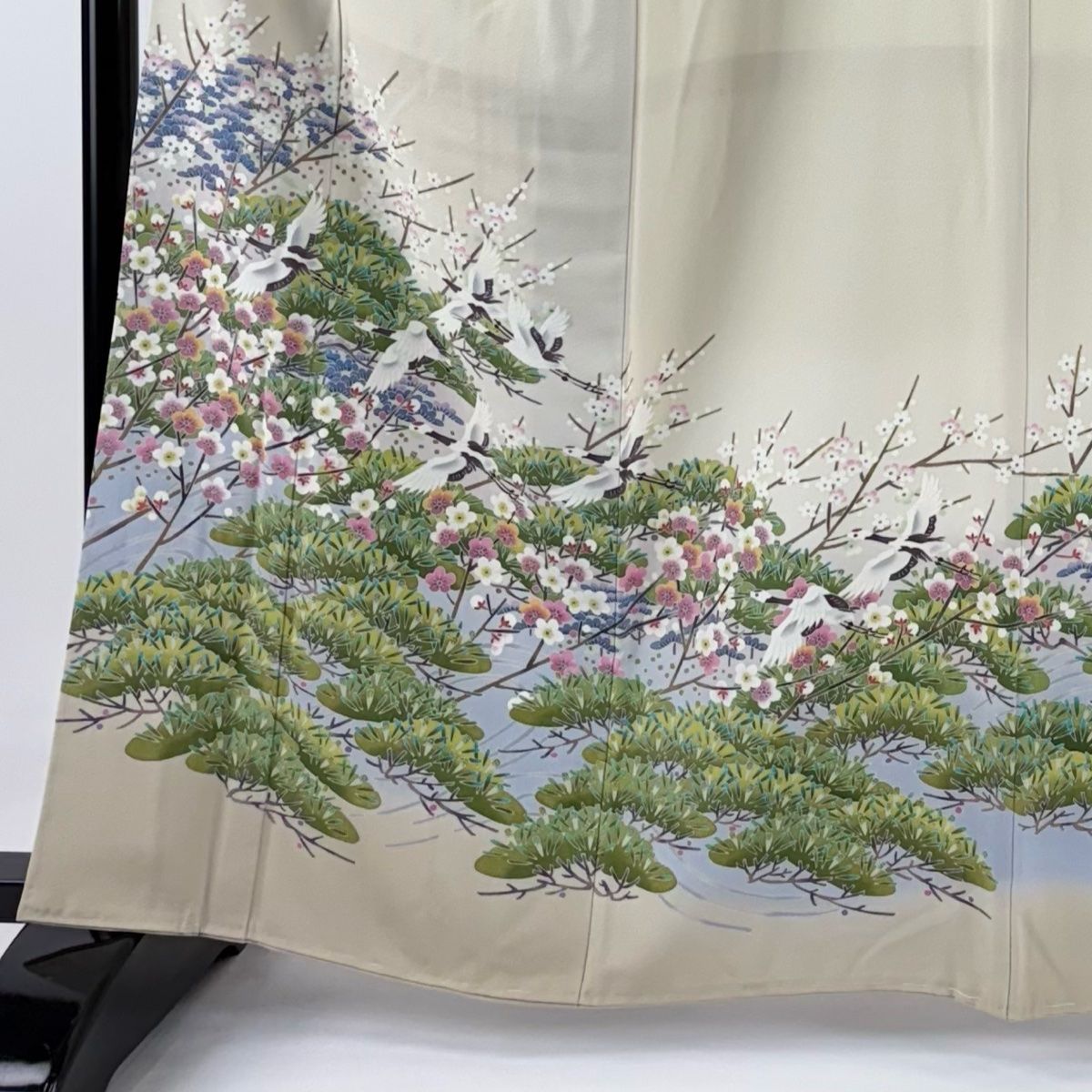 色留袖 身丈162.5 cm 裄丈65 M 袷 袋帯セット 濱田泰史 加賀友禅 落款 証紙 鶴 松梅 クリーム 正絹 一つ紋