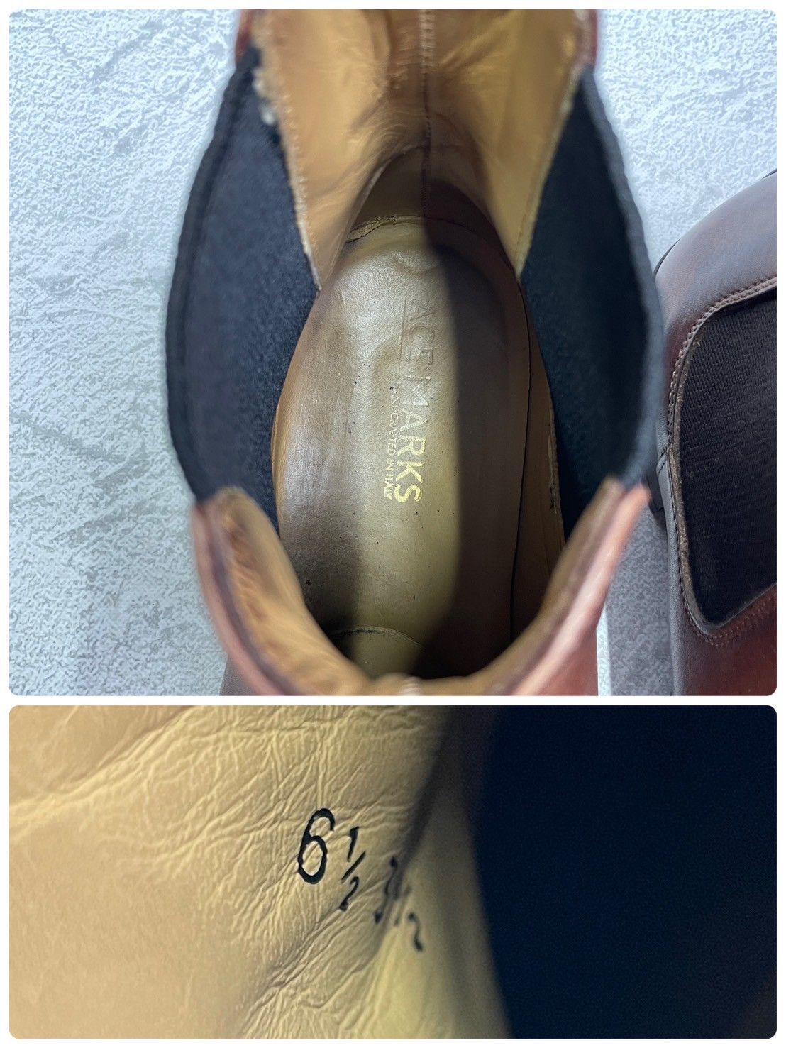 ACE MARKS エースマークス サイドゴアブーツ チェルシーブーツ プルストラップ パティーヌ 茶 ブラウン UK 6.5 25 cm W 3372