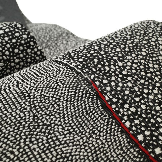 黒地に「鮫」と「大小霰」が左右で織り分けられたスタイリッシュで格好良いデザインです。