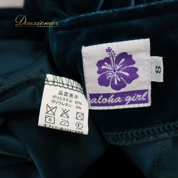 フラダンス 衣装 ワンピース ドレス グリーン系 アロハガール フラ ダンス 緑 ベロア 光沢 無地 アロハ 鮮やか シンプル 感 ALOHA GIRL ハワイアン 落ち着いた色