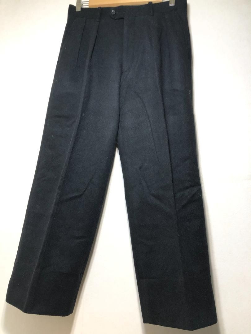 081082 INTERIM ウール カシミヤ ツータック パンツ 4 ブラック カシミア タック スラックス インテリム
