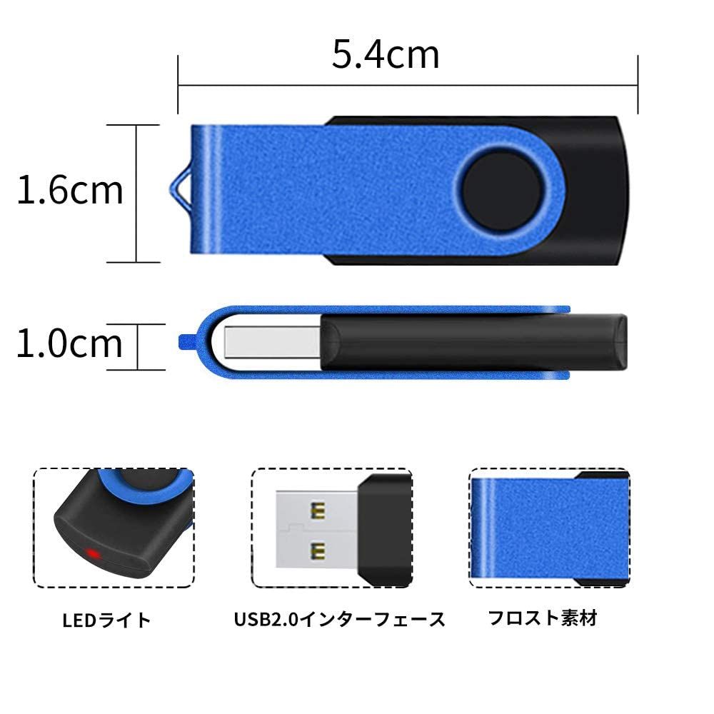 コンパクト・使いやすい:インターフェイス:USB2.0、質量:16g、サイズ:54*16*10mm。挿すだけで即使用可能、他の駆動ソフトウェアなど一切必要なく超簡単。360度回転可能なアルミカバーは特別に上品で高級なスクラブ質感に仕上がり、色も通常より鮮やかでおしゃれ。キャップを失くす事がなく保管しやすい。コンパクトでキーホルダーにつけてどこにも持ち歩けるし、とても運びやすい。