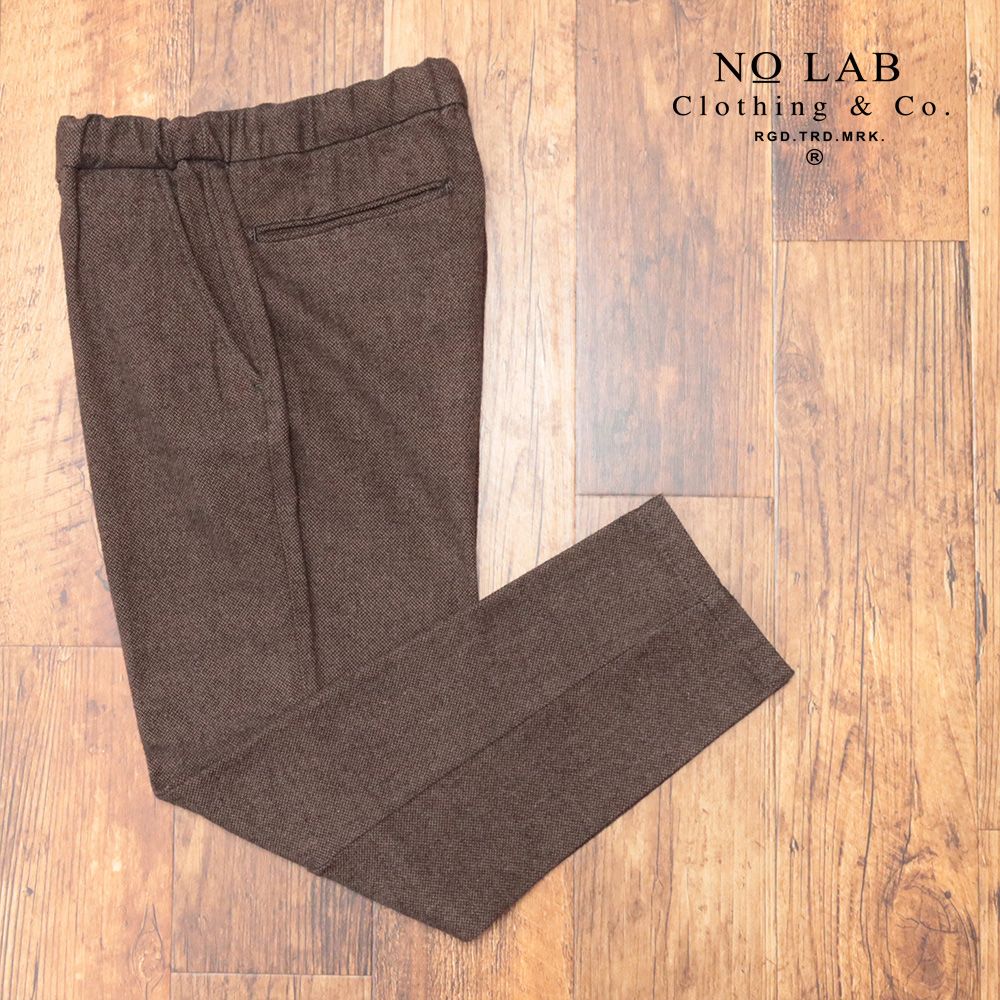 秋冬 NO LAB Clothing&Co. 34インチ イージー ウエストベルト パンツ 綿ポリ ツイード サルエル調 イタリア製 茶色 ブラウン md 202
