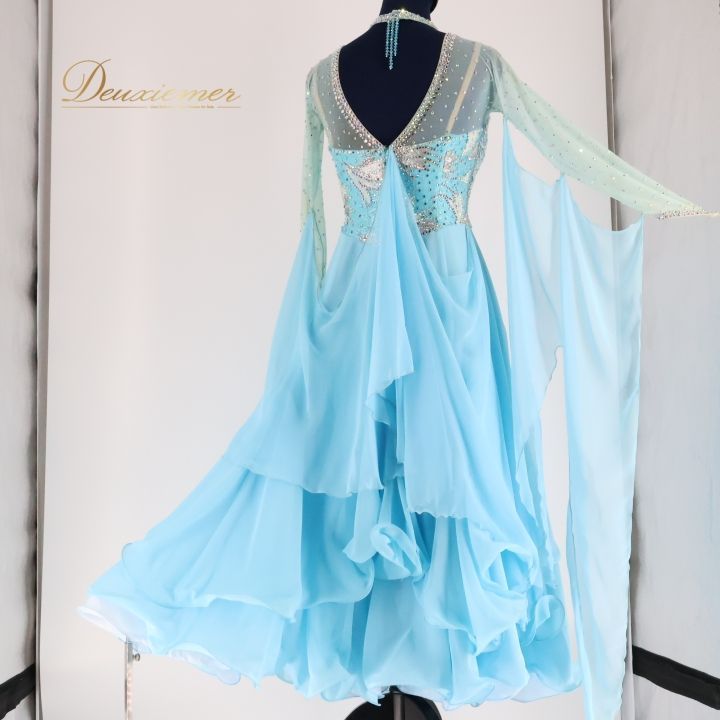 #社交ダンス #ダンス衣装 #ドレス #ワンピース #スカート #日本製 #スカイブルー #軽量素材 #ダンスファッション #女性用 #サイズM #ファッション #トルソー #ストレッチ素材 #パッド付き #背面ファスナー #可愛いデザイン #おしゃれ #ダンススタイル #ENUTSU