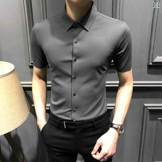 2 XL メンズ ファッション 服 男性用 オシャレ シンプル 大人 かっこいい 大きいサイズ ストリート 紳士服 夏 半袖 シャツ スタイル ノー アイロン 刺繍 スリム ハイエンド カジュアル ビジネス