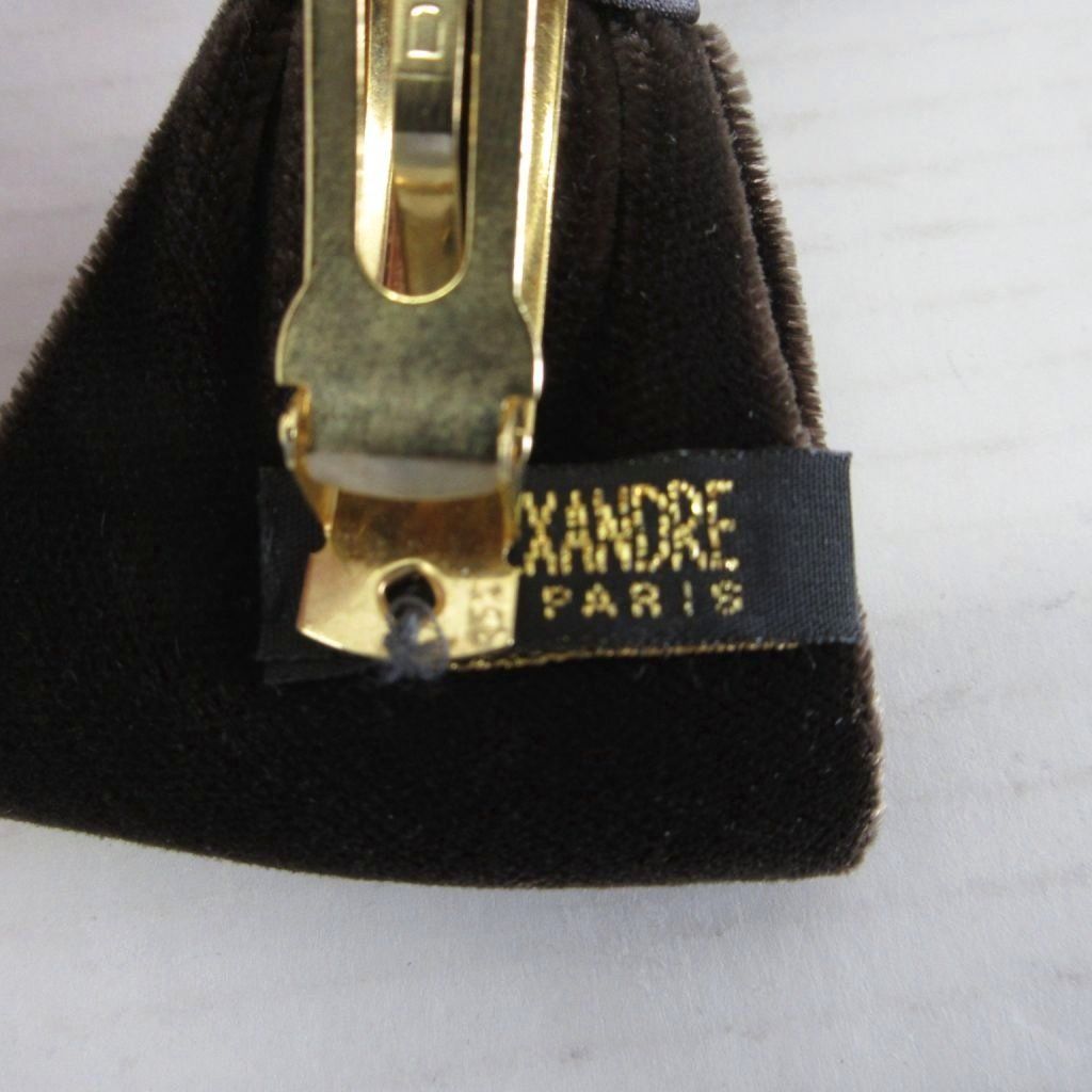 アレクサンドルドゥパリ Alexandre De Paris バレッタ ヘアアクセサリー ヘアクリップ リボン ベロア 茶 ブラウン