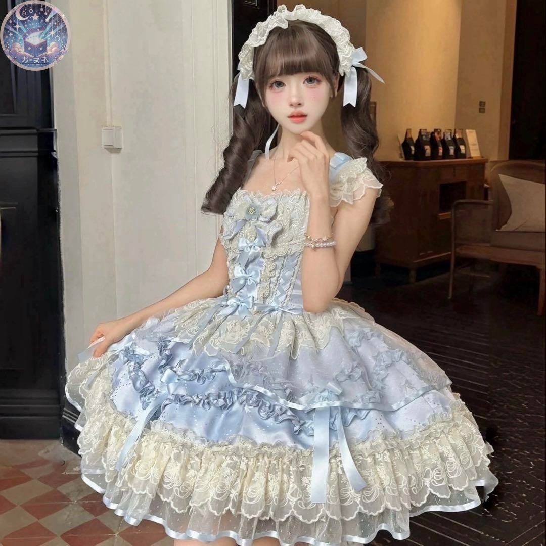 夢見る蝶 ロリィタドレスセット コルセットドレス ジャンスカ 甘ロリ ブルー