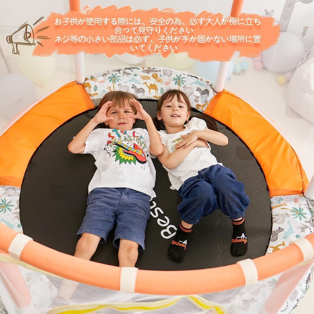 【商品仕様】組み立て完了のサイズ: 直径140cm。 鉄棒の高さを調整することができます。/ 本体重量:約15KG (梱包重量:約17.1KG)/ 耐荷重:65KG (*耐荷重65KGとは、厳しいトランポリン試験と認証を通じて最も適した重量です。 実際の使用では70~80kgでも全く問題ありません。他のショップでは、200KGや300KGを掲載しているが、これは現実的ではない。) / 日本語取扱説明書付き*よい体験のために、置場所の確保が四畳は必要です。トランポリンの下にクッションマットををご用意するのをお勧めです。**写真に写っている遊具(水鉄砲やスポンジボールなど)はセット内容に含まれません。