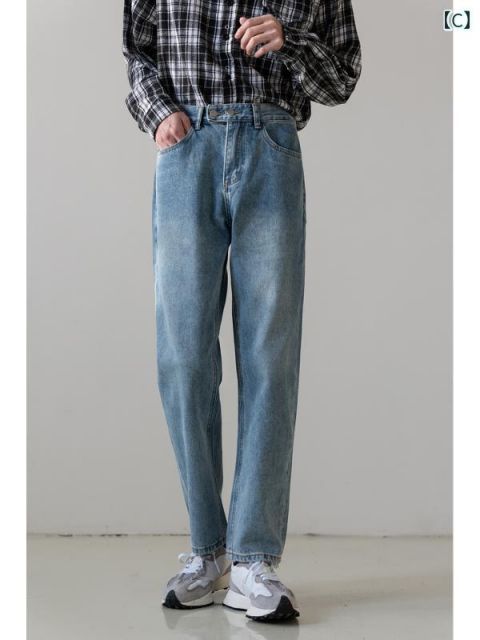 L 秋冬 コーデ メンズ 服 シンプル ファッション オシャレ 大人 かっこいい 大きいサイズ ストリート 紳士服 ストレート レッグ ジーンズ カジュアル スリムフィット ライト ウォッシュド フ スリミング パンツ