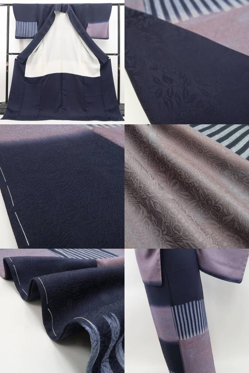 ❁tomihisa❁ 唐花地紋 着物 正絹 仕付け糸付 藍鉄と唐花で叶える大人のエレガンス 付下げ 6847