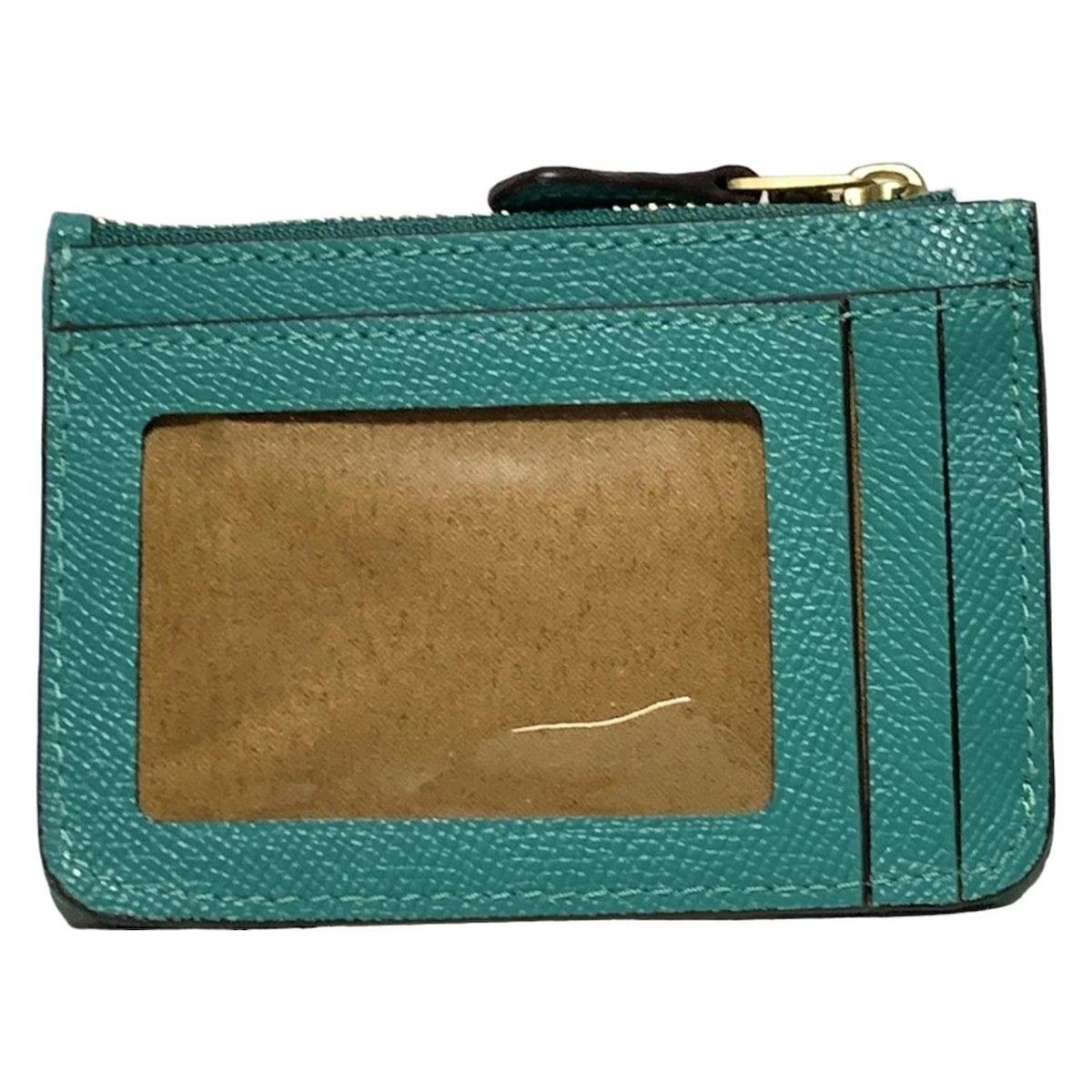 COACH コーチ コインケース ミニスキニー CH 810 ブルーグリーン パスケース付き キーリング付き レザー
