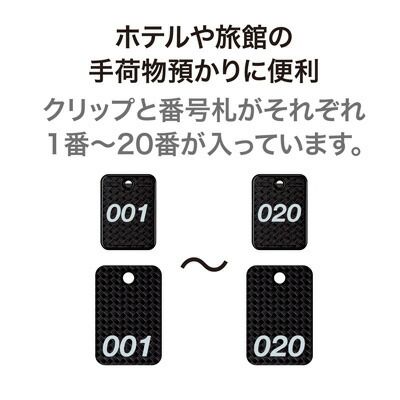 番号001~020のクリップと番号札で荷物の管理ができます。