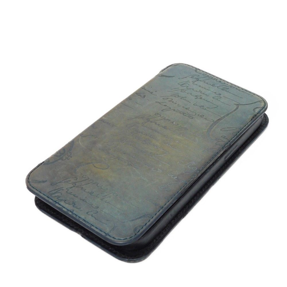 Berluti ベルルッティ スクリットレザー iPhone 14 Pro Max フォリオ ヴェネチア カーフ ブルー ブラック 手帳型 iPhoneケース カリグラフィ ストーンデニム スマホケース